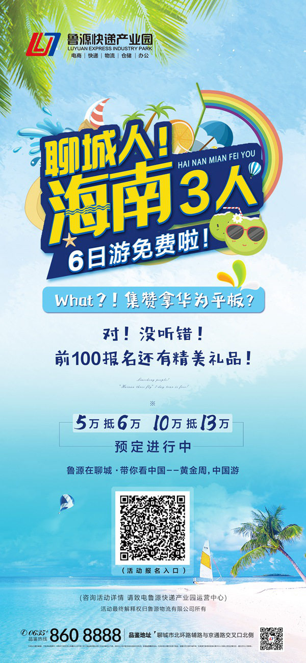在个人微信朋友圈上传两到三张本人在聊城或县市区当地标志性景点合影,并配文“鲁源快递产业园在聊城,我为聊城代言”,即可参与“鲁源在聊城,带你看中国--黄金周,中国游”朋友圈集赞大赛。